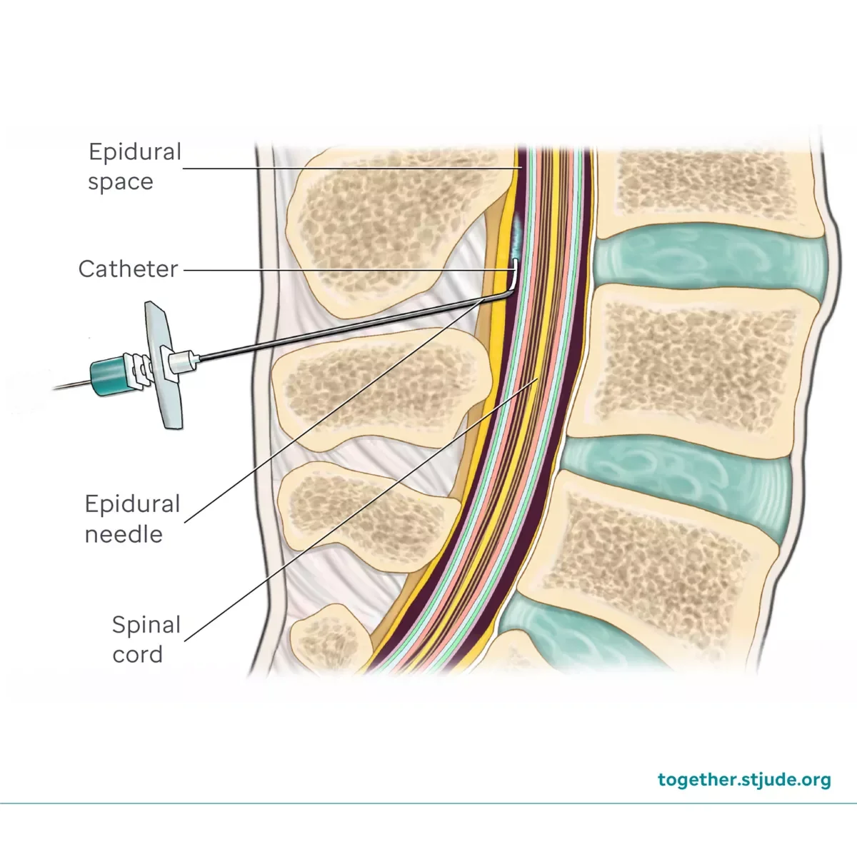 A small needle is used to find the space between the vertebrae of your spine in the lumbar region (lower back) and a small catheter (tube) is threaded through the needle into the space.